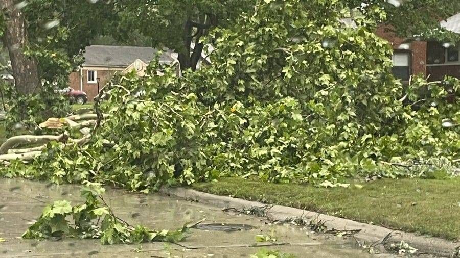 Officials said seven poles are down to one line from GP Court and the second line is down on Charlevoix from Lakeland to GP Farms.