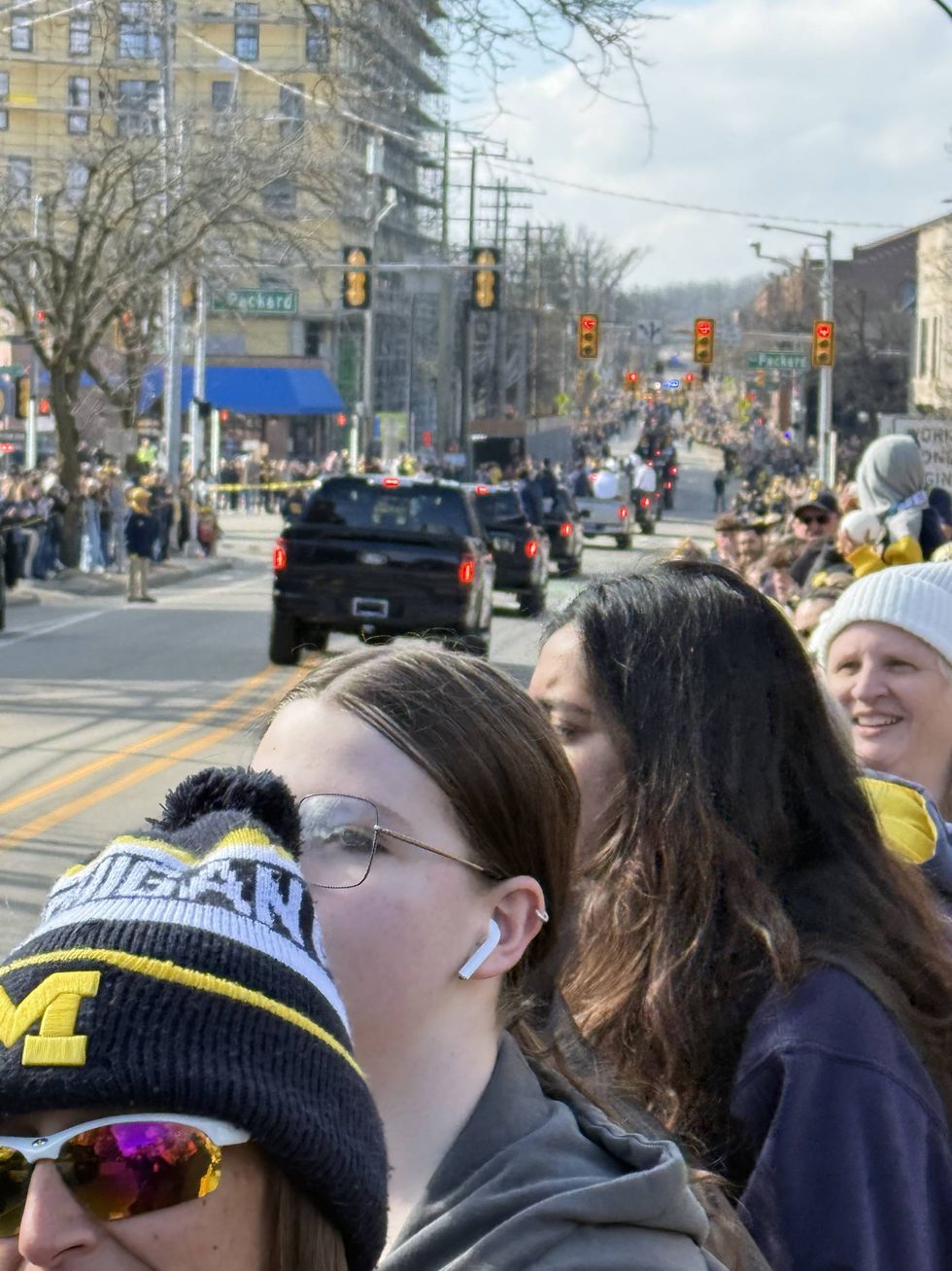 Thousands of fans lined South University and State streets in Ann Arbor Saturday morning for a parade celebrating the University of Michigan men's basketball national championship.