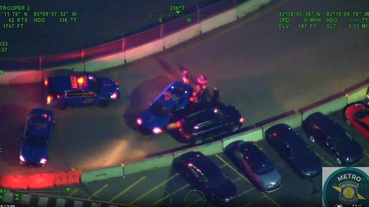 The incident was one of two chases involving Trooper 2. In the other case, a suspect was arrested in Dearborn after the outcome of a custody hearing in Macomb County descended into chaos as two people and a business were hit by gunfire and a car crashed into a restaurant.
