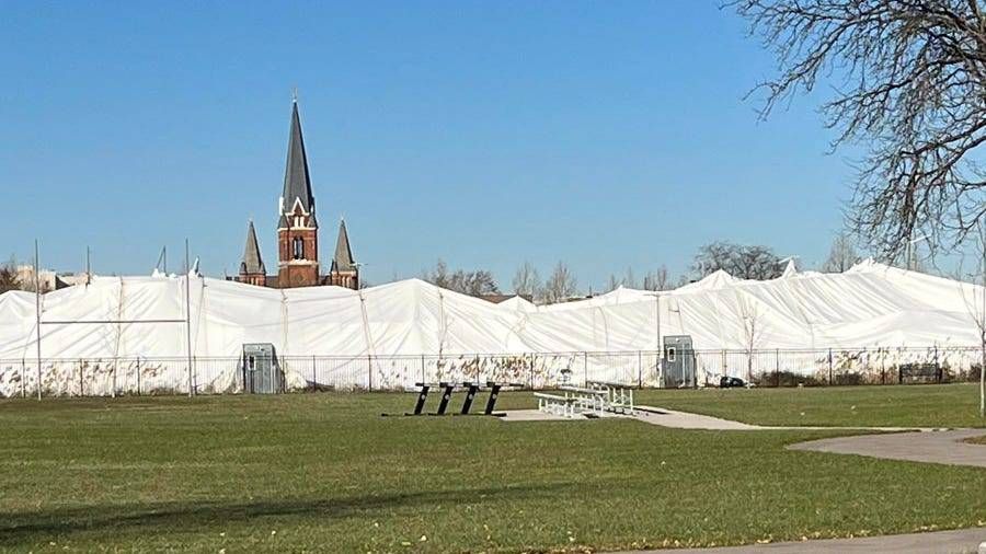 "When the dome came down our first effort was to protect the track from the winter elements -- the snow, the ice, the water and, of course, to get it patched and re-inflated ASAP," said Dale Hughes, Executive Director of the Detroit Fitness Foundation which owns and operates the facility.