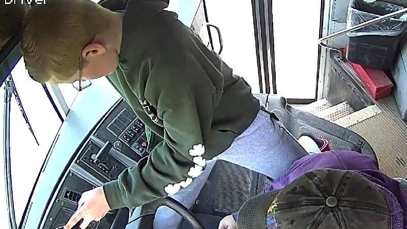 Reeves was on his way home from school on April 26 when the driver passed out. Surveillance video released by Warren Consolidated School shows the 13-year-old coolly rushing to the front of the bus and stepping on the brakes.