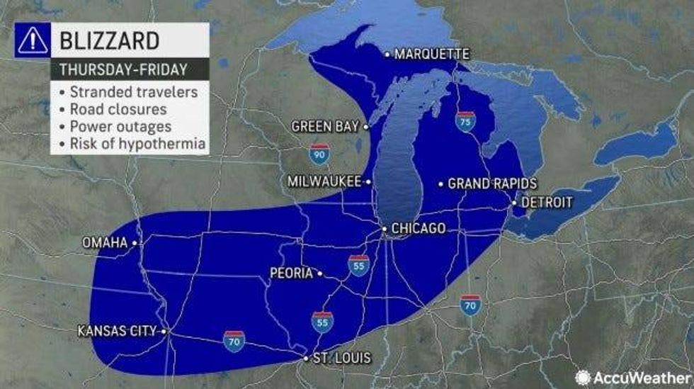 "Prepare for possible blizzard conditions," the NWS said. "If you must travel, have a winter survival kit with you. If you get stranded, stay with your vehicle."