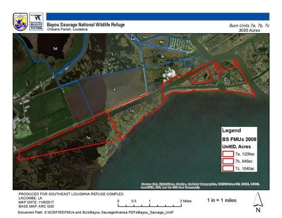 U.S. Fish and Wildlife officials are conducting a controlled burn today in the Bayou Sauvage National Wildlife Refuge in New Orleans East. The operation helps reduce the amount of flammable material available for potential wildfires.
