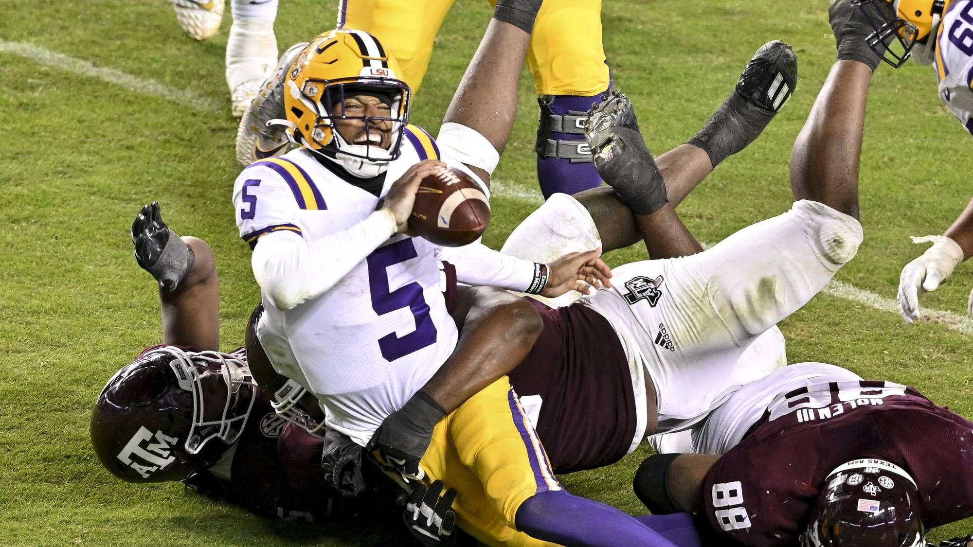 Quarterback Jayden Daniels was in clear and serious pain multiple times late in LSU's loss to Texas A&M in the regular season finale, and he's spent the past two days in a walking boot to protect his injured ankle.