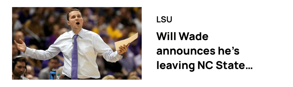 LSU has re-hired their former coach, according to media reports, and will fire Matt McMahon. Wade was fired in 2022 amid fallout from recruiting violations. Wade spent a year away from coaching before being hired at McNeese State and leading the Cowboys on back-to-back NCAA Tournament runs. He spent the past season with NC State, with that season ending in a First Four defeat to Texas.