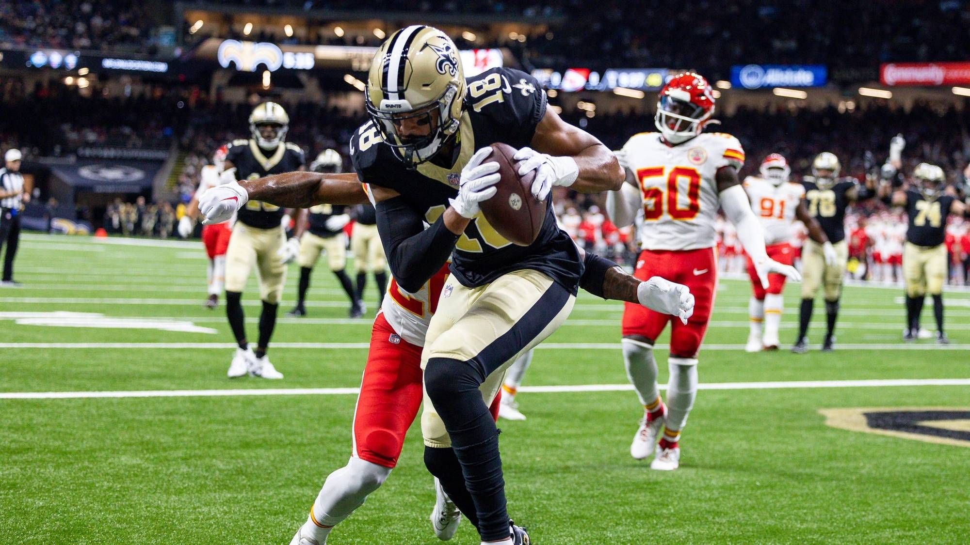 The Saints' star safety just has a way about him. He always seems to be in the right place, and that was the case today. Jamaal Williams caught a pass on what looked like an angle route and looked primed to get into the end zone, but that's when Mathieu came through with a clean strip just shy of the goal line. It's the type of play that we didn't see enough of last year. On the other end ... Jamaal isn't going to like that bit of tape. A perfect example of the give and take when it's team on team.