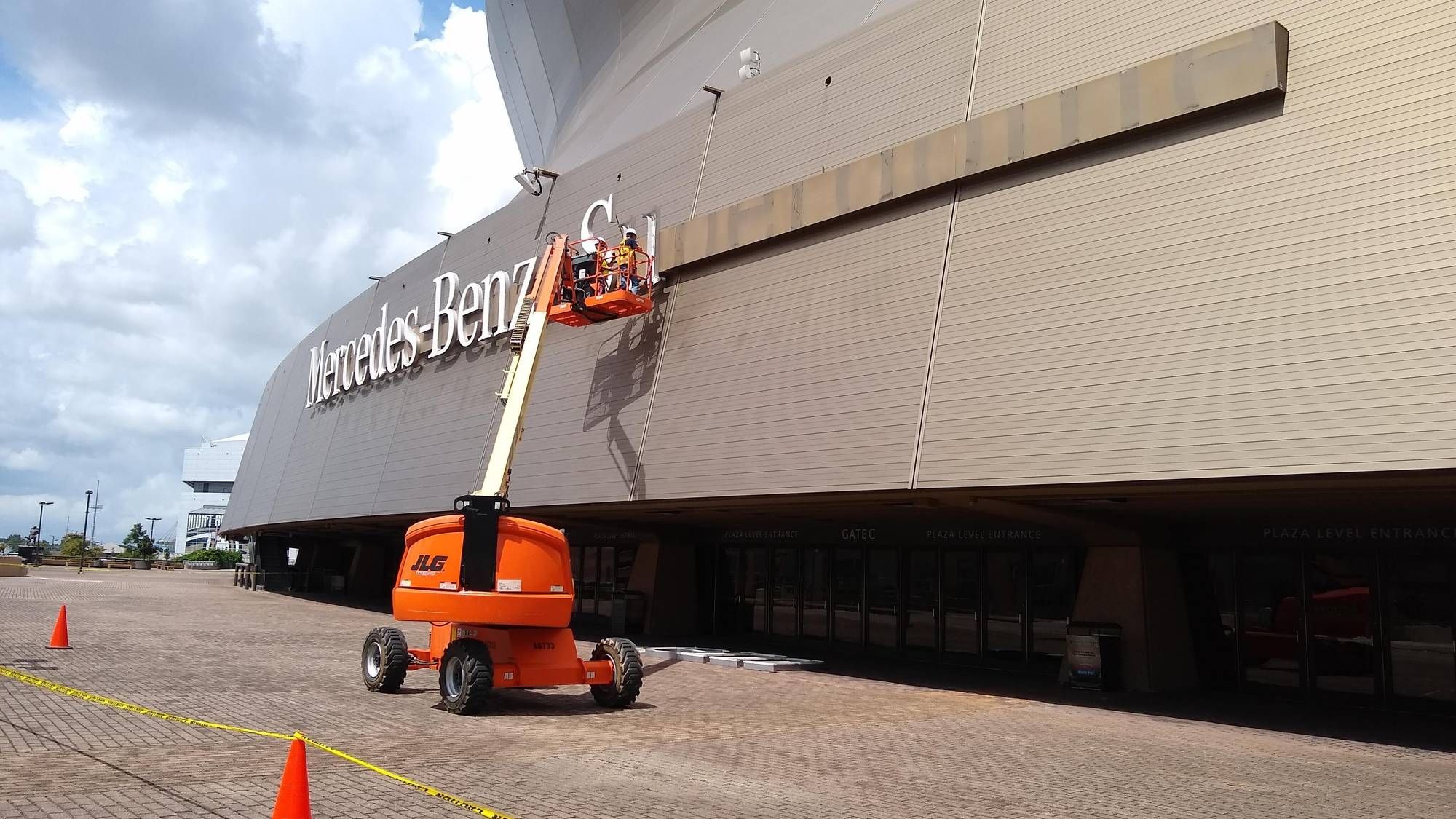 The building opened in 1975 and had previously been known as the Louisiana Superdome until Mercedes-Benz took over rights to the building in 2011. The German car manufacturer is still represented on the Atlanta Falcons' Mercedes-Benz Stadium.