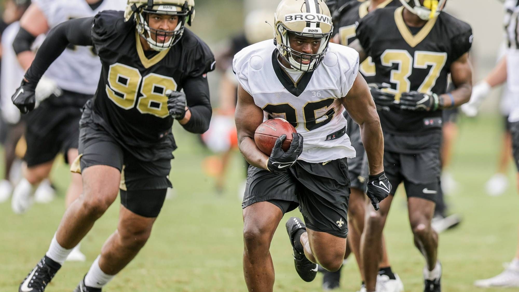 The sounds of Saints training camp can be hard to distinguish at times, particularly when the music is blaring.