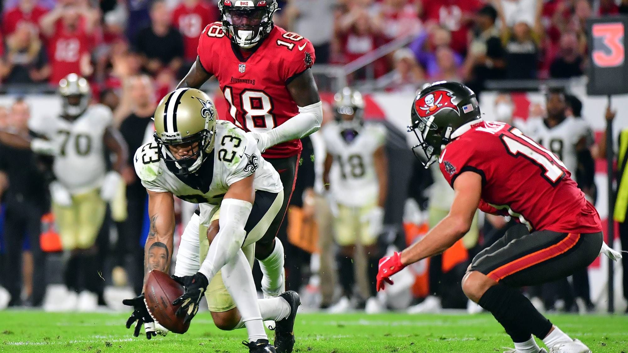 Allen, who had previously spent time as a head coach for the then-Oakland Raiders before returning to the Saints, "relished" the chance to be the top dog on the sidelines again. Payton shared his plans for how the team should operate, but otherwise it was Allen's show on gameday, and it went as well as it could've been hoped to go. The defense forced a fumble and an interception, and stifled the NFL's most potent offense that was admittedly missing key playmakers. Antonio Brown remains suspended, star receivers Chris Godwin and Mike Evans went out with injuries in the first half, and Leonard Fournette went out with an injury in the second half.