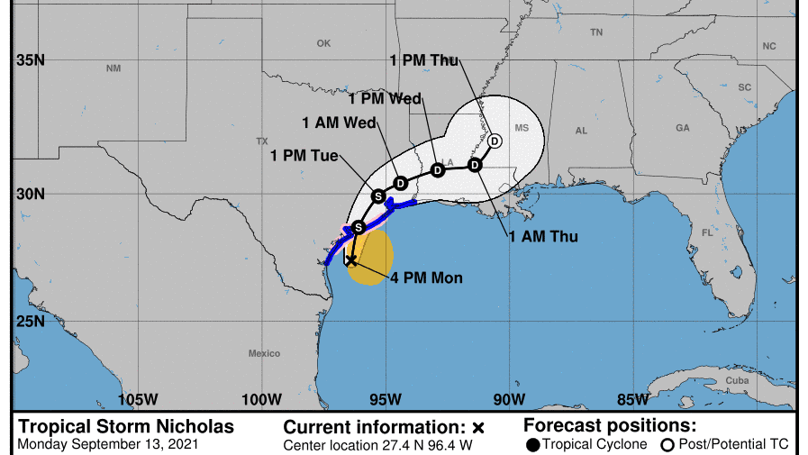 Even though Nicholas will likely only be a tropical depression when its center moves over Louisiana, it could deliver a lot of rainfall to the state.