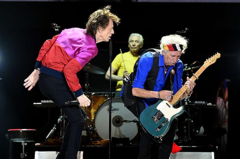 Keith Richards, Ronnie Wood, and Charlie Watts, The Rolling Stones performed a bevy of hits from