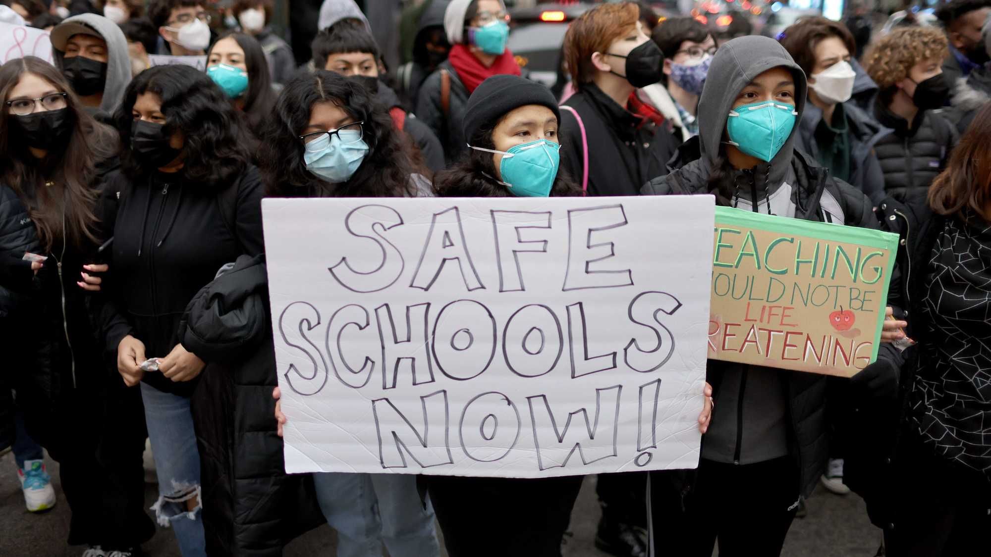 Students leave William Wells High School at the end of the school day on March 14, 2022 in Chicago, Illinois.