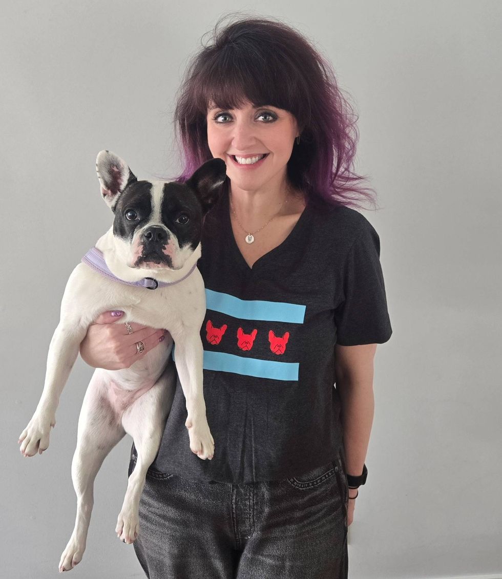 Mychelle Peterson with Izzy who she adopted through Chicago French Bulldog Rescue