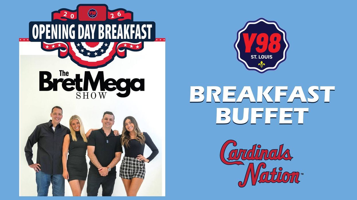 Join The Bret Mega Show live from Cardinals Nation for Opening Day on March 26th! Breakfast is $30 per person from 8am – 10:30am. Enjoy the special buffet menu featuring selections by the Y98 crew. Add bottomless Mimosas and Bloody Marys for $15. We'll have giveaways, prizes and a chance to win two tickets to the Opening Day Game and the St. Louis Cardinals Official Pre-Game Party at Cardinals Nation!